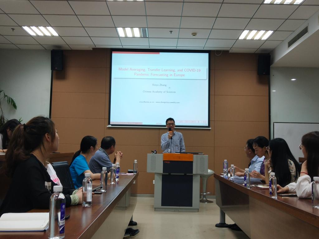 116报告厅举行。中科院数学与系统科学研究院、预测中心张新雨研究员应邀作题为“COVID-19 Pandemic Forecasting in Europe: A Transfer Learning with Weights Model Averaging Approach”的学术讲座。钱吴永副院长主持本次讲座,91制片厂