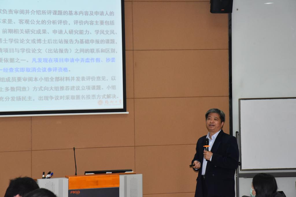 师生提供干货满满的报告,鼓励老师们学习王教授严谨的治学精神,多与王老师加强交流互动,要求老师们在撰写课题申请书的时候要精心设计、精心论证和精心打磨。