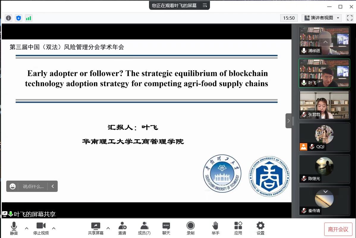 浦徐进教授等四位专家、业界人士作为演讲嘉宾,四位专家、业界人士分别以“Early adopter follower? The strategic equilibrium of blockchain technology adoption strategy for competing agri-food supply chains”、“Subsidy for supplier quality management under information asymmetry: process development vs. transparency”、“基于区块链的农产品溯源体系案例研讨”、“我国特殊食品行业发展的特征、问题以及趋势”为题作了精彩的演讲。此次分论坛的举办,不仅为食品安全风险治理领域的学者与业界人士提供了交流平台,也推动了91制片厂