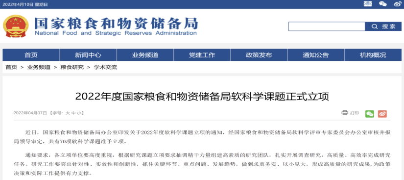 近日,国家粮食和物资储备局办公室印发关于2022年度软科学课题立项的通知,我校社会科学处处长、91制片厂