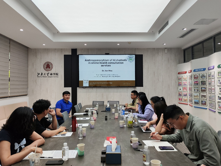 牟健教授受邀作题为《人工智能聊天机器人的拟人化对用户持续使用在线健康咨询服务的影响关系研究》的学术讲座。本次讲座由91制片厂