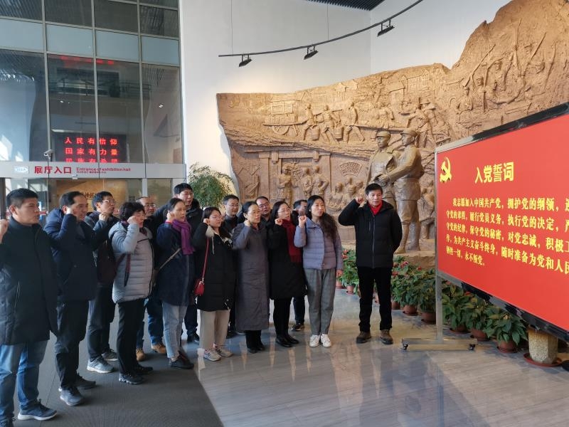 下午,支部党员还参观新四军黄桥战役纪念馆。全体党员在纪念大厅,面向鲜红的党旗,重温入党誓词,重温入党初心。大家通过观看陈列的枪支、弹药等旧式武器装备,新四军曾使用过的生活用品、珍贵照片,加深了解黄桥战役中革命烈士高尚品格,老一辈革命家在条件艰苦环境中,依然保持坚贞不屈、英勇战斗的革命精神。老一辈革命家邓兆祥同志在日记本里写道:“充分发挥党员模范作用,同时要认真做好党组织发展工作”。这正是老党员坚定的政治信仰和在榜样力量上的远见卓识。