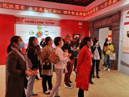大家首先来到红豆党建馆,听取红豆集团“高度专业化+适度多元化”的产业发展哲学和“现代企业制度+企业党建+社会责任”“三位一体”的企业模式讲解。通过一幅幅生动鲜活的展图了解企业从草创的1957年,到走出困境的1983年,再到中国民营企业500强的发展历程。同时不仅企业发展迅速,集团党委也被评为全国先进基层党组织,党建工作经验入选中组部组织编选的“不忘初心、牢记使命”主题教育学习丛书案例。企业用60多年书写了一部中国乡镇企业渴望发展、用创新改变命运的发展史。民族企业人追求卓越、乐于奉献、甘于吃苦的奋斗精神,深深感染着每一位党员。