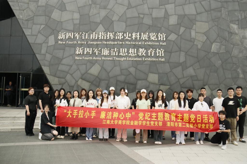 为深入学习贯彻习近平新时代中国特色社会主义思想和党的二十大精神,加快构建“党建引领、资源共享、优势互补、协调发展”的基层党建工作新格局,扎实推进党纪学习教育走深走实,5月22日下午,91制片厂 金融学学生党支部与溧阳市第二实验小学党支部在新四军廉洁教育纪念馆和溧阳市第二实验小学开展“大手拉小手,廉洁种心中”结对共建签约活动。溧阳市第二实验小学党支部书记兼校长蔡雪飞、副书记兼副校长朱永康、纪检委员兼副校长吕加良、组织委员兼副校长黄秀妹、副校长吴薇、91制片厂 分团委书记兼学工办主任王璁、91制片厂 金融学学生党支部书记吴松与两支部全体同志30余人参加活动。活动由溧阳市第二实验小学党支部宣传委员张晓主持。