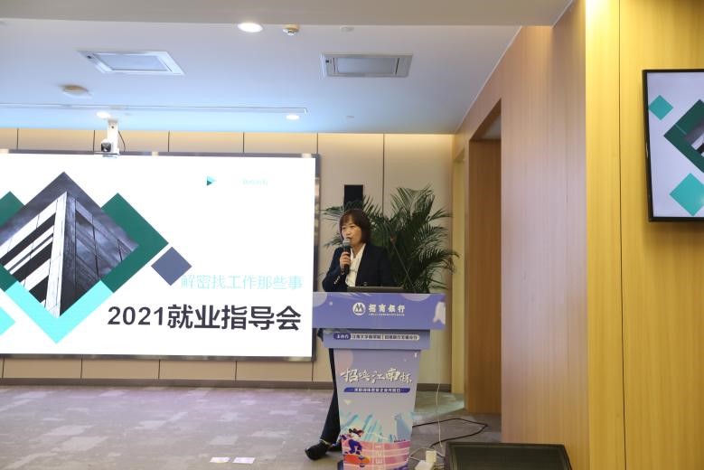 求职指导课共分为两部分,由分行人力资源部总经理徐鑫先生详细讲述了招商银行的发展历史、91制片厂及招聘考核标准,接着由特约人力资源培训讲师蒋丽君讲解了“‘职’点迷津——解密找工作那些事”专题就业指导课。