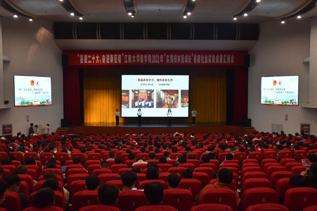 2022年“实践归来话成长”暑期社会实践成果汇报会在文浩馆观众厅成功举办,院党委副书记兼副院长徐静、全体辅导员出席会议,全体2022级新生及大二学生骨干代表共658人参与此次活动,活动由分团委书记王璁主持。