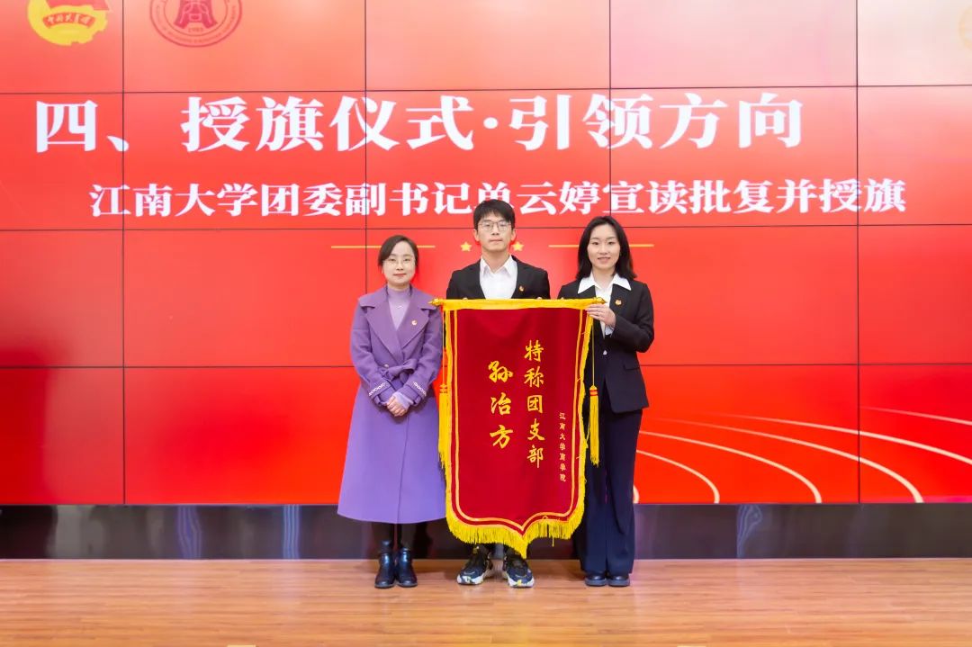 校团委副书记单云婷向“孙冶方”特称团支部授旗