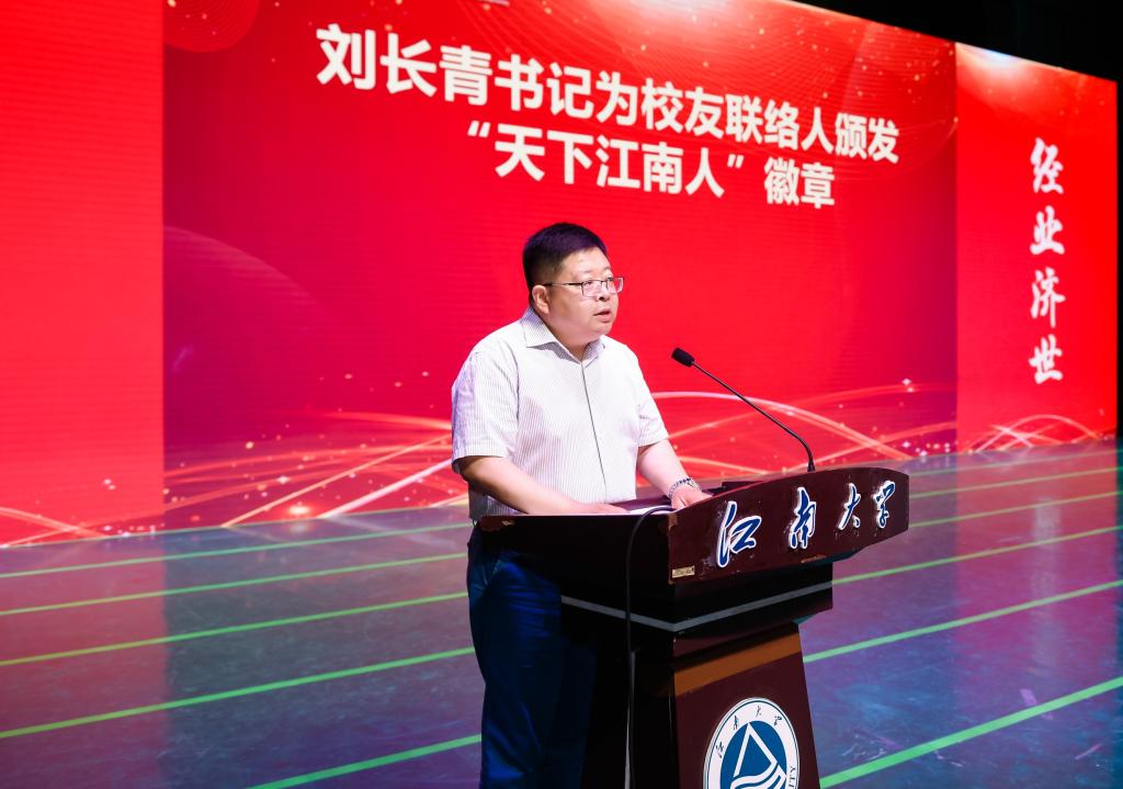 91制片厂 党委书记刘长青带领毕业生佩戴“天下江南人”徽章并讲话