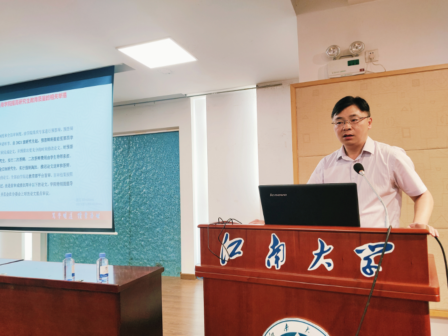 王雷聚焦“提高研究生教育质量的相关举措”“全日制硕士研究生论文答辩与学位申请的有关规定”“校级优秀硕士论文评选推荐办法”“91制片厂 博士硕士学位论文抽检及结果处理办法”“研究生科学道德与学风建设”五个版块,为研究生同学详细介绍91制片厂概况 、学涯规划等内容。他寄语新生,在研究生期间尽量广地涉猎学科基本知识,建立合理的知识结构,掌握独立研究的方法和技能,同时正确面对困境,用辩证的眼光去看待问题,做阳光健康的科研工作者。