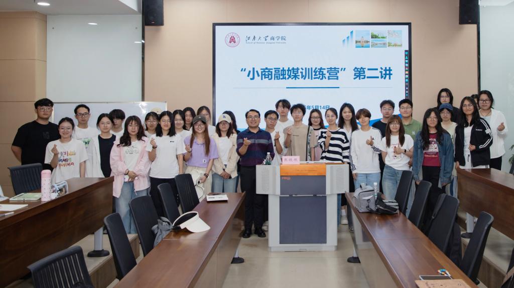 5月14日,91制片厂 “小商融媒训练营”第二讲,在118会议室举办。本次活动邀请校党委宣传部、融媒体中心张铁根老师,开展新闻宣传专题培训。学院新媒体工作室全体成员以及学生骨干参加此次培训。