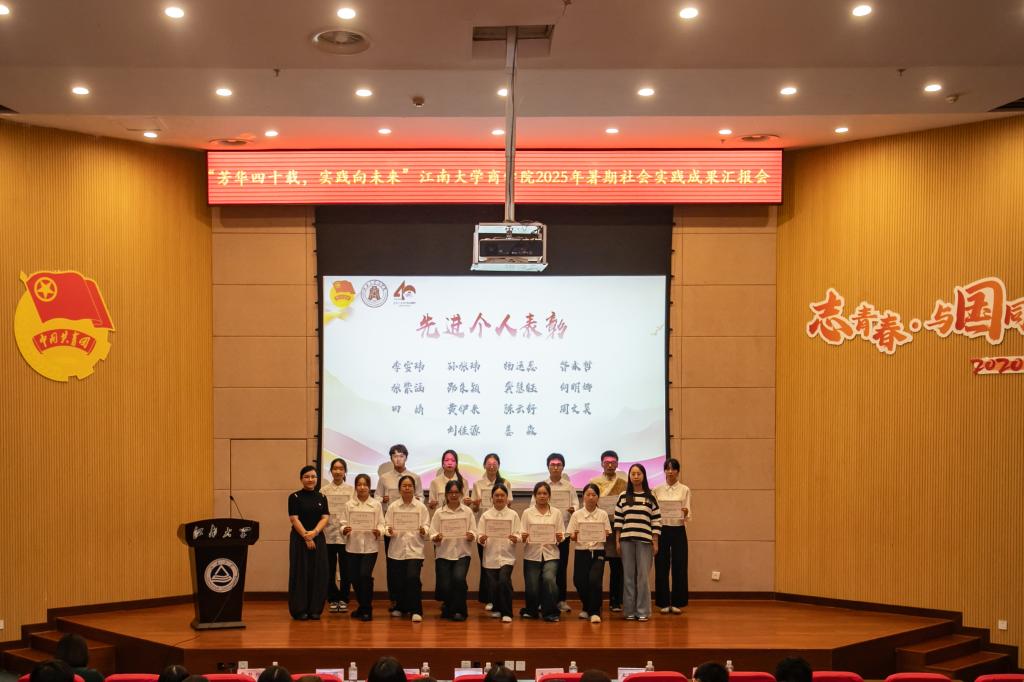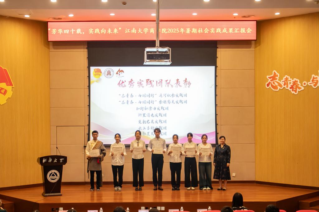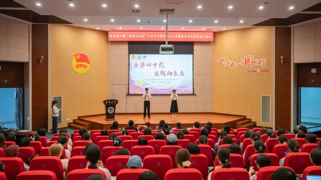 汇报会现场,7支优秀实践团队一同“实践归来话成长”,讲述亲身实践故事,分享青春成长收获。“志青春·与国同行”运河织金实践团深入无锡、扬州、杭州三城调研,探索运河与城市共生密码,寻找运河工商文化传承创新之路。“知行新澄力”实践团深入江阴理解区域科技创新与人才发展路径,挖掘校地企三方联建思路。“浙里浔光”实践团调研湖州双林镇产业融合现状,挖掘文化赋能潜力,探索“多村联建”共富路。“云上吉行”实践团走进浙江安吉,体验无人机在农业、文旅等领域的创新应用,记录低空经济赋能区域发展的生动实践。“瓷韵龙泉”实践团深度探查青瓷产业发展现状,探寻非遗青瓷现代商业发展新路径。“迭部星火”实践团探索甘肃迭部“红绿结合”乡村振兴新模式,为当地文旅产业发展提供切实可行的青年方案。“志青春·与国同行”金腊富民实践团奔赴昆山金华村,追溯百年腊味产业发展路,助力乡村经济振兴与文化传承。