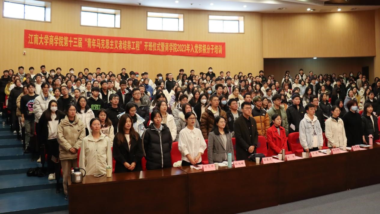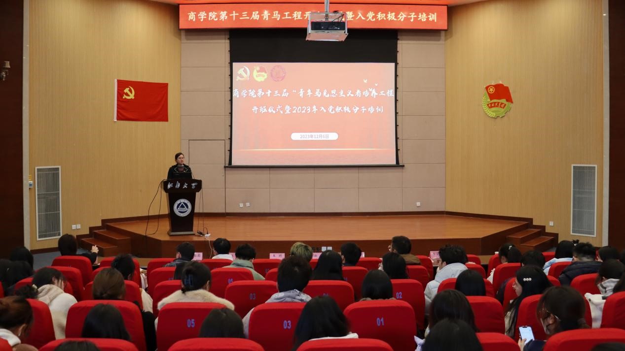 第十三届“青马工程”开班仪式暨2023年入党积极分子培训在远东报告厅举办,学院党委副书记兼副院长徐静、马克思主义学院副教授孙晨光、学院学工办副主任孙旭媛出席仪式,培训班学员和入党积极分子共计300余人参加。活动由学院分团委书记王璁主持。