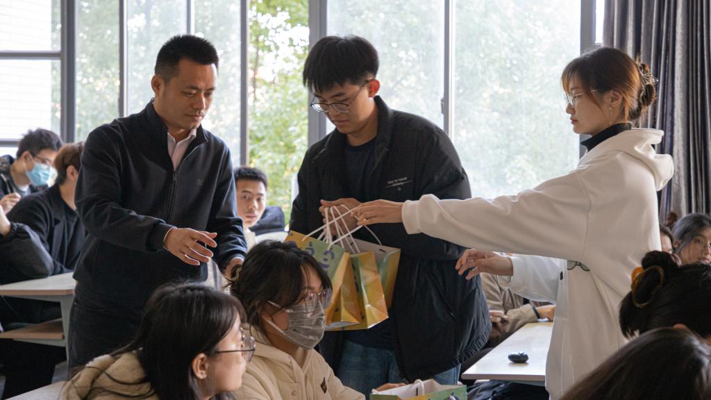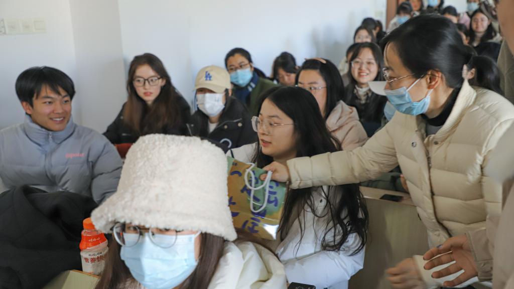 之后,学院领导老师为在场考研学子发放考研精美礼包。精心准备的礼包传递着来自学院和老师真心的祝福,希望257份美好心意如冬日暖阳般温暖护航着所有考研征途上的奋进青年,愿他们目光坚定、信心满怀、心想事成。