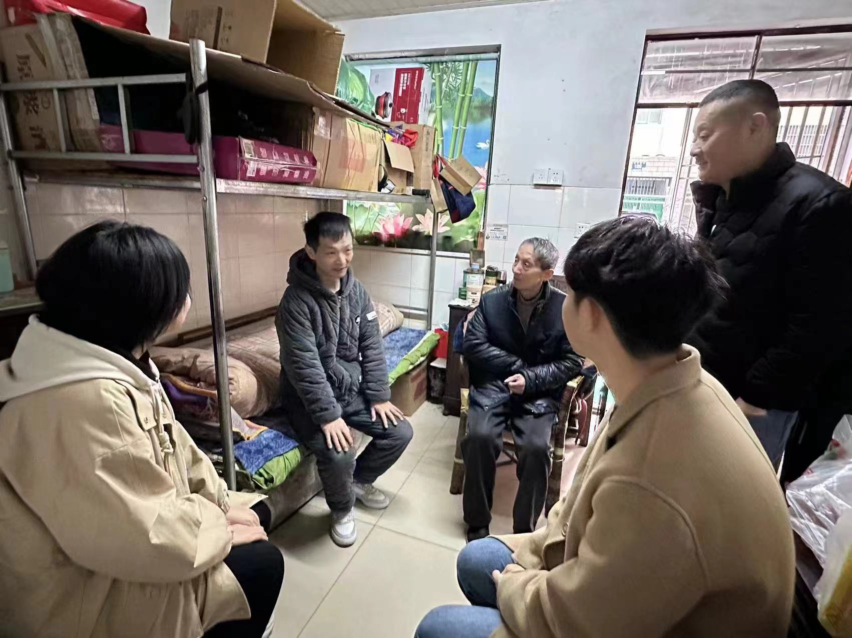 本次活动分为三个小组,每一小组分别前往一位退役军人的家中探访,为退役军人及其家人送去水果、牛奶、面包等关怀物资并进行交流。
