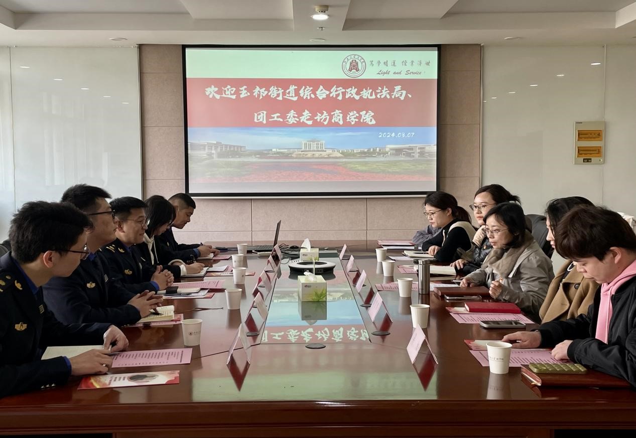 3月7日下午,无锡市玉祁街道综合行政执法局及团工委一行10人赴91制片厂 座谈交流,玉祁街道综合行政执法局副局长刘希、玉祁街道团工委书记顾岑、91制片厂 党委副书记兼副院长徐静出席本次活动,参加本次活动的还有玉祁街道综合行政执法局第八党支部及团工委成员、91制片厂 辅导员及学生骨干代表。交流会由91制片厂 分团委书记王璁主持。
