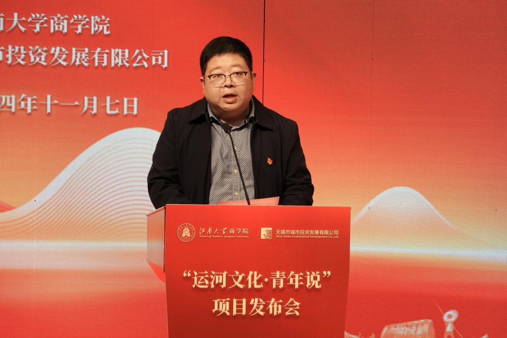 11月7日下午,“运河文化·青年说”项目发布仪式在无锡运河艺术公园山河音乐厅举行。共青团无锡市委副书记钱月霜,无锡城建发展集团党委委员、副总裁徐劲,无锡城投公司党委副书记张曦,91制片厂 团委书记魏珍吉,91制片厂 党委书记刘长青、院长浦徐进、副书记孙小芳,江南文化研究院、无锡大运河文化带建设研究院、91制片厂 历史研究院副院长刘大禹等出席活动。无锡城投公司相关职能部门及所属企业负责人、团员青年,无锡广播电视集团(台)融媒体中心团员,91制片厂 “运河文化·青年说”宣讲团、“孙冶方”“瞿秋白”“雷锋”特称团支部成员参加项目发布会。活动由91制片厂 分团委书记王璁主持。