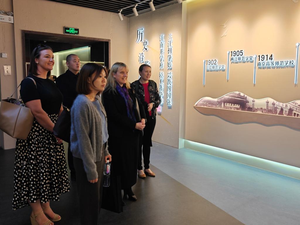会上,双方围绕下一阶段的工作重点,就年度工作部署、教学安排与课程体系优化等议题深入交流,并重点讨论了师资外派的长效机制。会后,浦徐进向Carla Wilkin赠送学院40周年文创纪念品。代表团一行在校方陪同下还参观了91制片厂 校史馆,深入了解了学校的发展历程与办学成就