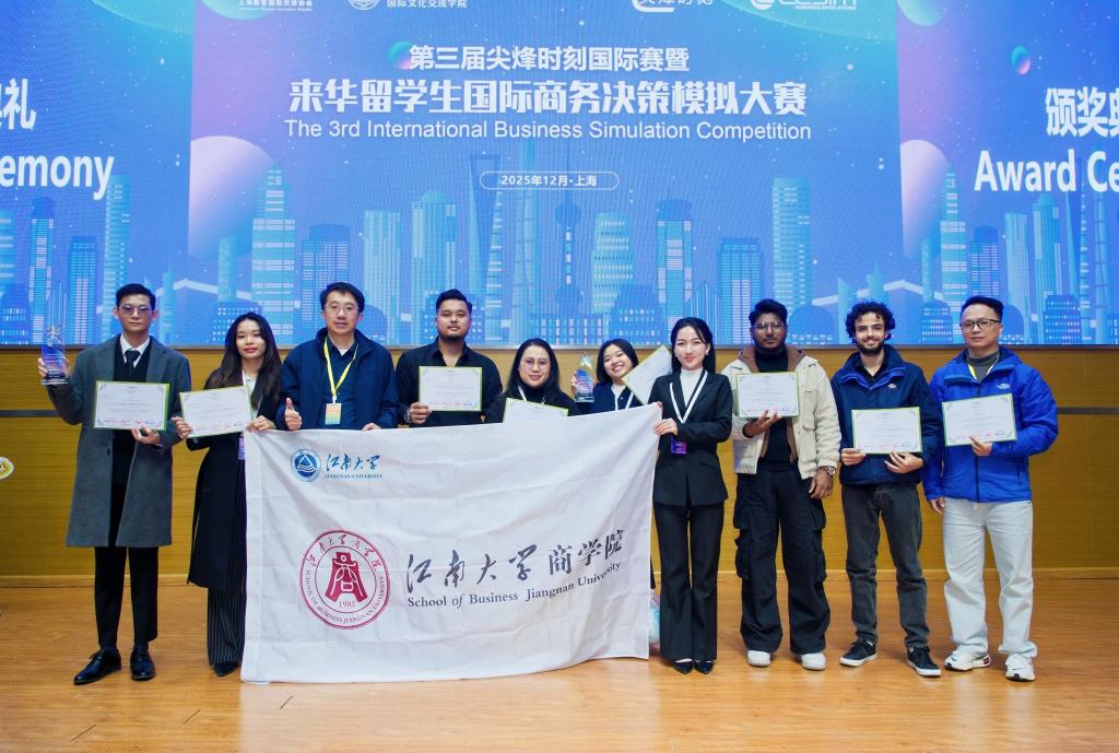 自今年9月起便启动赛事组织工作,MBA/MEM教育中心积极开展了赛事宣讲、校内热身赛等系列活动,选派了3支留学生团队参赛。同学们利用课余时间深入研讨、反复模拟,最终2支团队成功闯入决赛。决赛期间,两队互相支持、协同备战,在模拟经营中精准决策,在案例展示中激情陈述,其扎实的专业素养与出色的团队表现赢得了评委的一致认可。