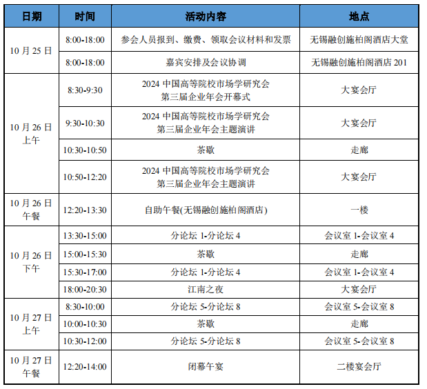 质量品牌研究院承办的第三届企业年会。本届企业年会将于 2024 年 10 月 25-27 日在享有“中国民族工商业发祥地”美誉的无锡召开。中国高等院校市场学研究会是国家一级学会,是主要由全国各高等院校从事市场营销学教学和研究的专家学者组成的非营利性学术团体。由中国高等院校市场学研究会主办的企业年会是学术界与企业界重要的交流平台,被誉为“中国营销界的产学顶级峰会”。