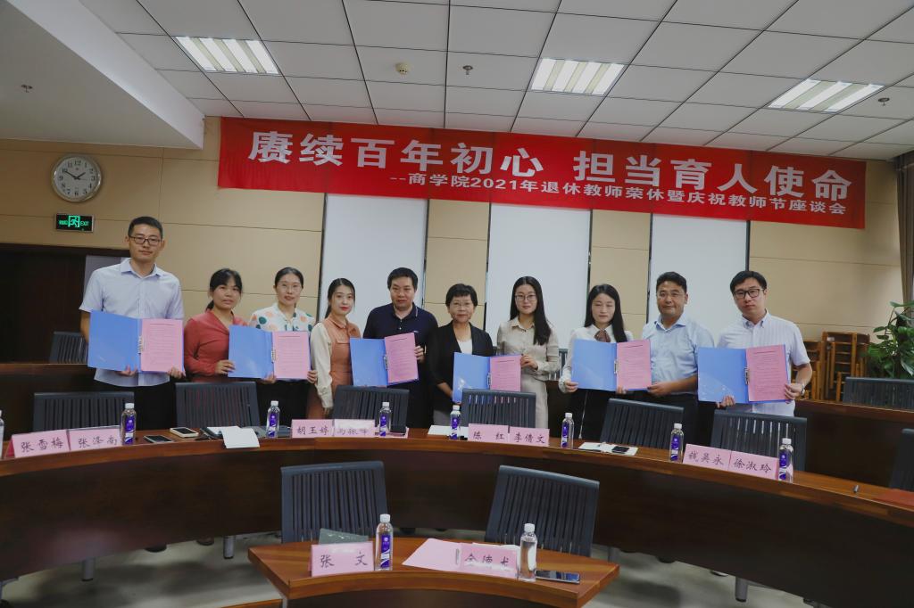 教师节传承活动,老中青教师齐聚一堂座谈交流很有意义和必要。他代表学院党政工,给全体老师致以教师节诚挚的问候和祝福,致敬一代代商院人接续努力和辛勤付出。他指出,新时代赋予商院人更高的职责与使命,全院上下必须坚持立德树人根本任务和改革发展第一要务,增强时代责任感和发展紧迫性;必须坚持同向同行、同心协力,凝聚学院高质量发展与个人高质量发展的合力;必须坚持“赓续百年初心,担当育人使命”的时代主题,展现当代商院教师的“笃学明道、经业济世”院训风采,围绕“为党育人、为国育才”,积极探索新时代教育教学方法,不断提升教书育人本领,为培养德智体美劳全面发展的社会主义建设者和接班人作出新的更大贡献。
