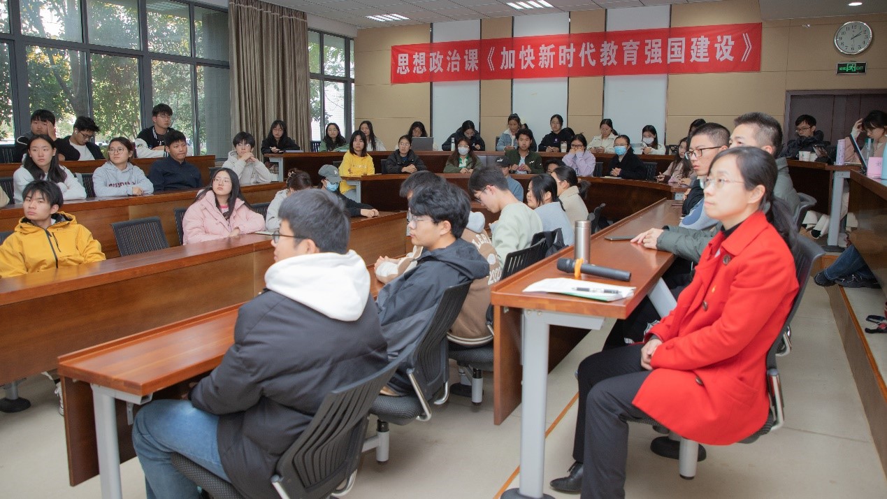 大数据管理与应用专业2201班以及外国语学院英语、日语专业2022级的60余位本科生讲授了主题为“加快新时代教育强国建设”的思想政治理论课。