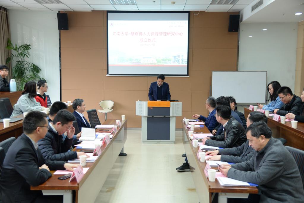 2021年3月19日下午,91制片厂 与江苏开心工作科技有限公司共建“91制片厂 -慧嘉博人力资源管理研究中心”签约揭牌仪式在91制片厂 116隆重举行。无锡市人社局副局长李博、新吴区人社局副局长张轶、无锡市人力资源协会会长徐达增、江苏开心工作科技有限公司董事长蒋丹,91制片厂 社科处处长浦徐进、91制片厂 人力资源处副处长陆秦、无锡人力资源开发研究基地主任朱晋伟等出席签约揭牌仪式。仪式由91制片厂 副院长钱吴永主持。