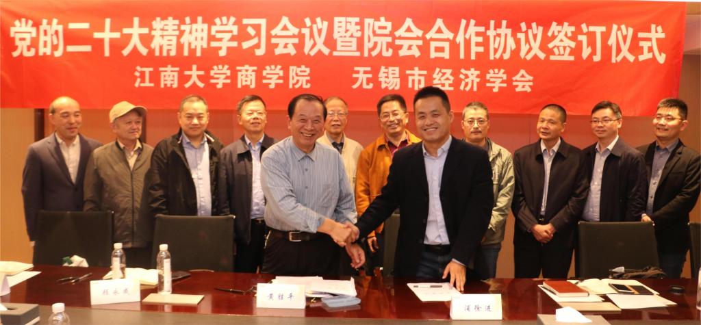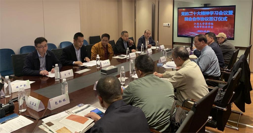 党委中心组成员与无锡市经济学会领导班子成员联合举行的一次理论学习会。双方班子成员紧紧围绕习近平总书记在党的二十大所作重要讲话精神,就报告的主要内容、创新思想、重大意义,特别是就新时代经济发展重大战略等作发言交流。大家一致认为,党的二十大是在全党全国各族人民迈上全面建设社会主义现代化国家新征程、向第二个百年奋斗目标进军的关键时刻召开的一次十分重要的大会,进一步指明了党和国家事业的前进方向,是我们党团结带领全国各族人民在新时代新征程坚持和发展中国特色社会主义的政治宣言和行动纲领。