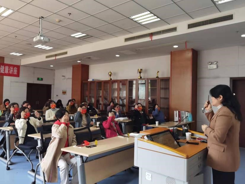 接下来,丁敏主任在理论知识、保健作用、注意事项、适应症与禁忌症等维度阐释了穴位保健按摩应如何在生活中得到实际运用。为了进一步增强各位老师对穴位按摩技能的掌握,丁敏主任具体介绍了几个对女性养生和强身健体颇有裨益的穴位,如百会穴、三阴交、足三里等。丁主任详细介绍了各穴位的功效、定位与简易取法。老师们纷纷进行了取穴尝试,加深了对穴位按摩的了解。