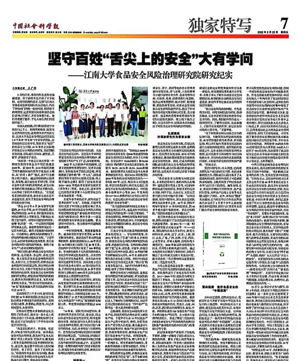 食品安全风险治理研究院研究纪实》原文链接://sscp.cssn.cn/xkpd/xl/202202/t20220225_5395510.html