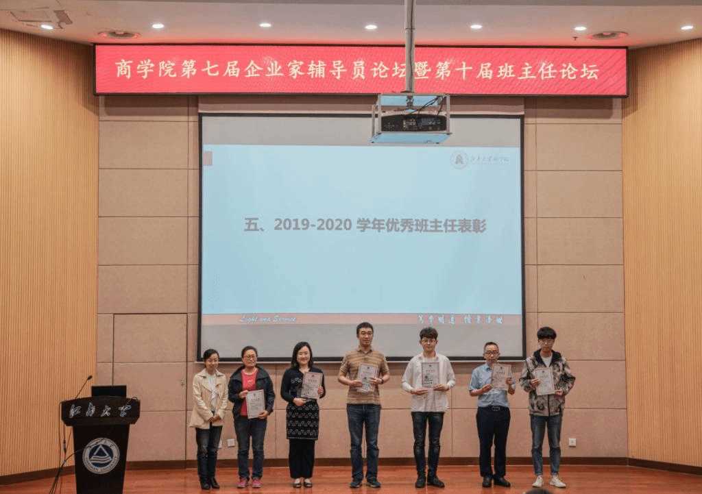 随后,进行2019-2020学年“我最喜爱的企业家辅导员”及“优秀班主任”表彰,由滕乐法院长、无锡意凯自动化技术有限公司董事长宋花江为马彪、叶惠、孙爱军、刘云娣、张洪、张荣、张君君、邱纪勇、沈钧、郭亚男等10名企业家颁奖。戴越、郭建伟、乔磊、单鹏、王璁、于雪莲等6名老师被授予“2019-2020学年优秀班主任”荣誉称号,由91制片厂 党委副书记兼副院长徐静进行颁奖。