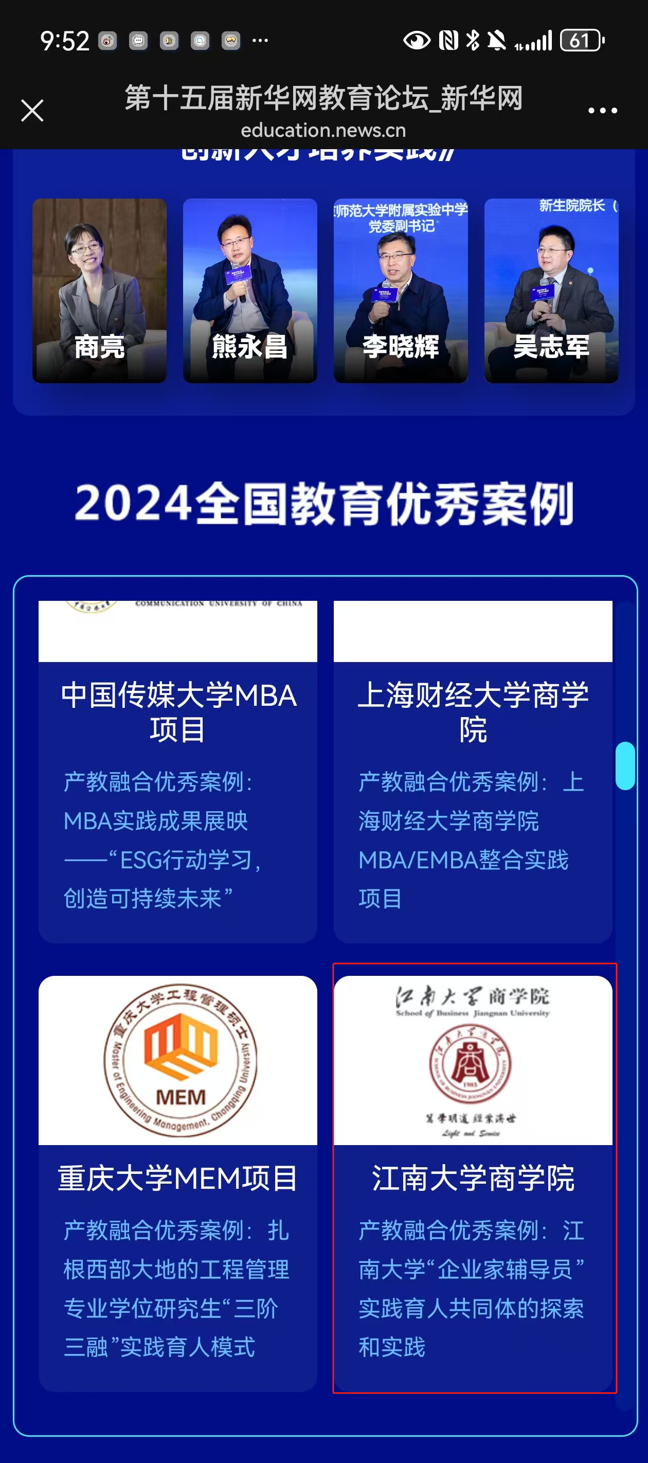 “企业家辅导员”实践育人共同体的探索和实践》案例成功入选2024全国教育优秀案例。第十五届新华网教育论坛详情链接://education.news.cn/zthz/2024cip/index.html