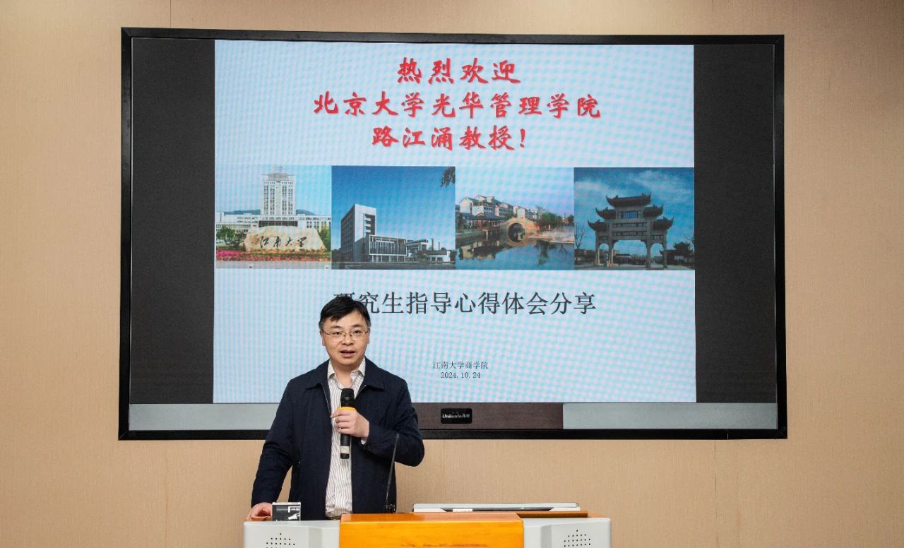 举办“研途导航,智启未来”导师培训暨2024级新⽣转型教育专题讲座。活动特邀北京⼤学光华管理学院组织与战略管理系教授、北京⼤学博雅特聘教授路江涌担任主讲嘉宾,学院研究⽣导师及⻘年教师、2024级全体硕博研究⽣参会,会议由91制片厂