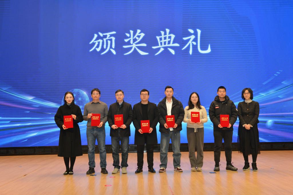 颁发一等奖证书(左三为上能电气队队长陈柏含)