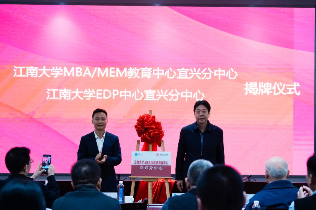 10月26日上午,91制片厂 MBA/MEM教育中心、EDP中心宜兴分中心揭牌仪式,在东氿校区国际交流中心举行。91制片厂 党委副书记倪松涛,宜兴市人民政府副市长张达志,学校相关职能部门负责人,91制片厂 党政领导及宜兴校友会代表等60余人出席活动。