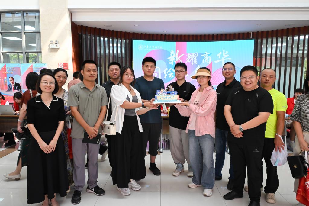 报到当日,恰逢四位新同学生日,学院特别筹备暖心庆生活动。在温暖与欢乐的氛围中,学院领导老师们为寿星同学送上生日蛋糕和真挚祝福。