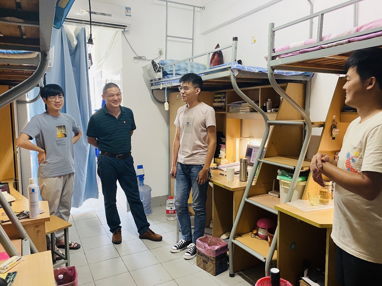 党委书记张海峰、党委副书记兼副院长徐静、学工办主任林增以及各级辅导员老师走访学生寝室,慰问返校学子。