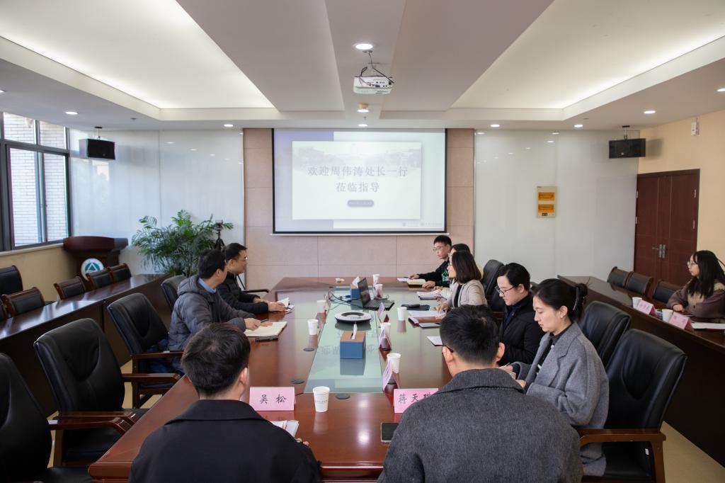 孙小芳代表学院对学生工作处一行的到来表示热烈欢迎,向学工处各位领导对学院学生工作的指导和关心表示感谢,并围绕“培根铸魂,增强思政教育工作效能”“学风创优,健全学生发展支持系统”“精准供给,提升就业指导服务质效”“严守底线,夯实发展安全稳定根基”四方面,汇报学院学生工作重点及思考。