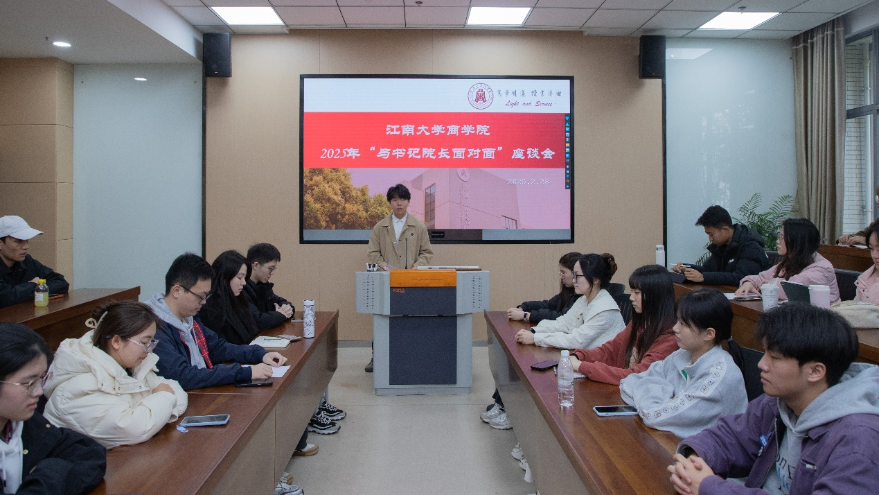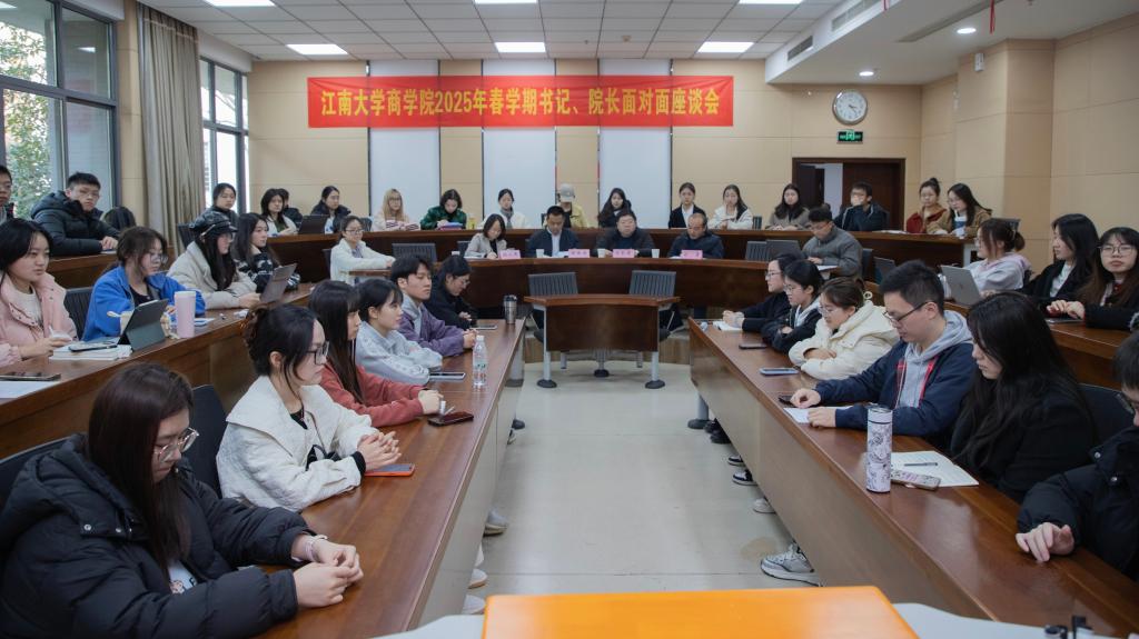 2025年春学期“与书记、院长面对面”师生座谈会在MBA118会议室举行。院党委书记刘长青,院长浦徐进,党委副书记兼副院长孙小芳,副院长刘勇,分团委书记王璁以及各年级学生代表参加了本次座谈交流。座谈会由院学生会主席卞宇轩主持。