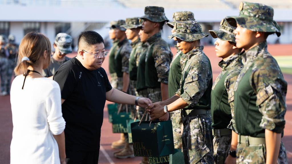 人武部军事训练科张慧,承训部队相关负责人等前往体育中心训练场,亲切看望并慰问军训教官及2025级全体参训学生。慰问活动由辅导员蒋天琪主持。