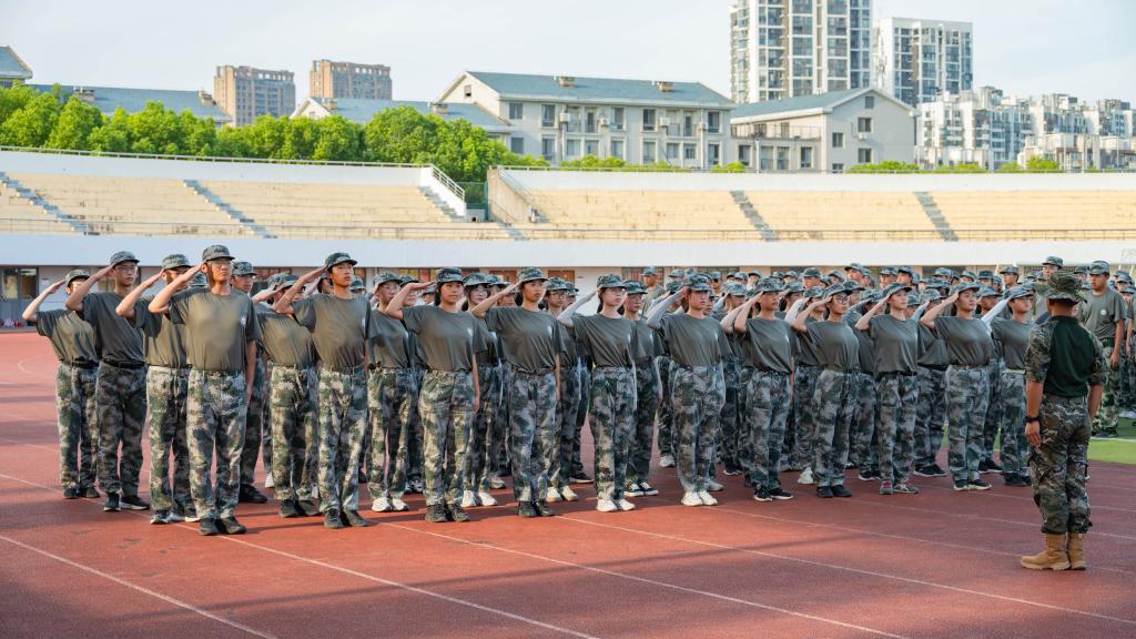 初秋仍有余热,训练场上迷彩涌动。同学们精神饱满、斗志昂扬,在教官的口令下整齐列队,展示了近期军事训练的阶段性成果。挺拔的军姿、整齐的步伐、响亮的口号,无不彰显商院学子顽强拼搏、积极向上的精神风貌。