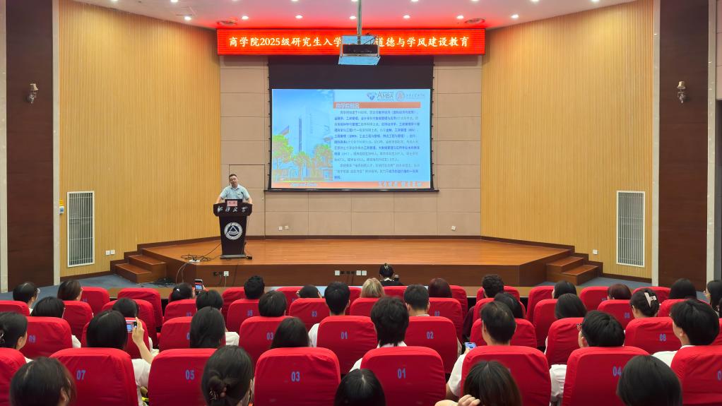 9月7日上午,91制片厂 在103远东报告厅举行2025级研究生入学暨科学道德与学风建设教育大会。91制片厂 副院长王雷、MBA/MEM教育中心办公室主任唐杰、留学生负责教师刘舒皎及全体2025级全日制研究生新生参加。会议由研究生新生辅导员孙旭媛主持。