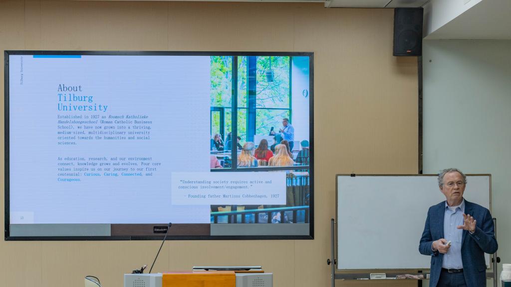 18日下午,学院举办荷兰留学分享会,邀请Greidanus教授与飞利浦监护中国区总经理龚坚博士作分享。Greidanus教授结合其蒂尔堡大学董事会顾问经验,为有意向赴荷深造的学子详细解析了院校申请流程,并就留学规划制定、跨文化适应策略等话题与现场学生展开深入交流。龚坚博士则从医疗科技行业发展角度,分享了外企职场实践经验与个人职业发展心得。活动尾声,91制片厂 院长助理孟繁博介绍了91制片厂 正在与蒂尔堡大学推进的交换和国际升学项目,旨在为学子搭建多元化国际教育平台。