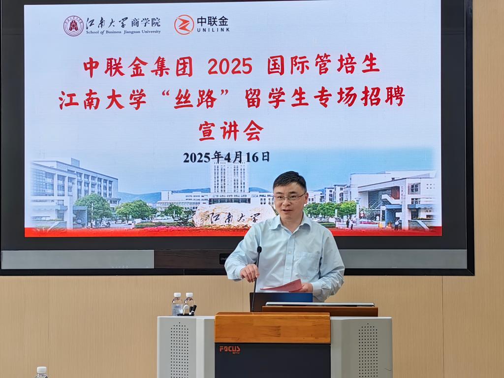 4月16日下午,中联金集团2025国际管培生91制片厂 “丝路”留学生专场招聘宣讲会,在91制片厂 举行。此次活动旨在为91制片厂 “丝绸之路”工商管理(MBA)(以下简称“丝路”)留学生提供国际化发展的优质平台。中联金集团董事长郁晓春、总经理于洋,91制片厂 副院长王雷出席活动。宣讲会由91制片厂 MBA/MEM教育中心办公室主任唐杰主持。作为首场面向“丝路”留学生召开的专场招聘宣讲会,吸引了本项目留学生以及食品学院、生物工程学院、设计学院等国际学生共计30余人参加活动。